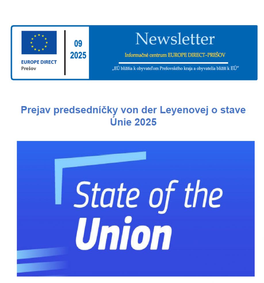 september 30, 2025 Napísal(a) Super User Čítať 444 krát veľkosť písma zväčšiť veľkosť písma zväčšiť veľkosť písma E-mail Newsletter 9 Newsletter Europe Direct Prešov 09/2025 Stiahnuť prílohy: Newsletter_Europe_Direct_Prešov_September_2025.pdf (185 Stiahnutia) Označené v Európska únia Európsky parlament Newsletter september novinky Edpresov Europe Direct Brusel Tweetnuť